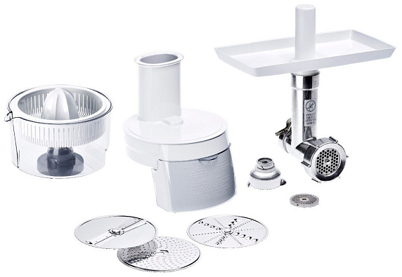 • MUZ8FA1 мясорубка: Для рубки мяса, рыбы, сырых овощей. Можно доукомплектовать насадкой-шаблоном для выпечки MUZ 8 SV 1 и прессом для отжима сока MUZ 8 FV 1
