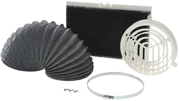 Комплект Bosch DSZ4545 для работы в режиме циркуляции воздуха вытяжек DFL064A51, DFL064W51, DFM064A51, DFM064W51. В комплекте: фильтр (арт. 11008080), выпускная решетка и гибкий шланг диаметром 150 мм, длиной 800 мм с одним хомутом.