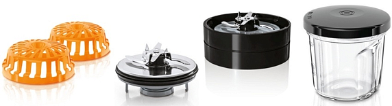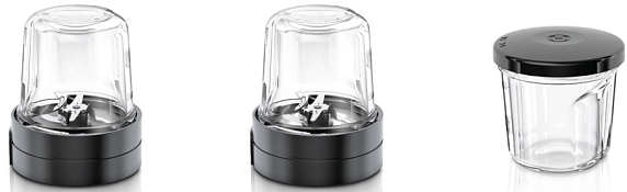 Набор насадок MUZ45XCG1 эффективен для измельчения кофейных зерен, специй и орехов. Контейнеры с крышками обеспечивают удобное хранение приготовленных продуктов. Насадки подходят как для твердых, так и мягких ингредиентов.