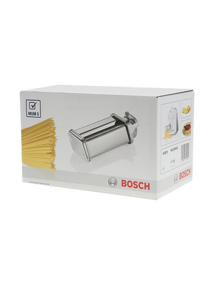 Насадка на кухонные комбайны Bosch MUZ5NV3 предназначена для приготовления спагетти и позволит с лёгкостью превратить листы теста в аккуратные домашние спагетти толщиной 1.6 мм