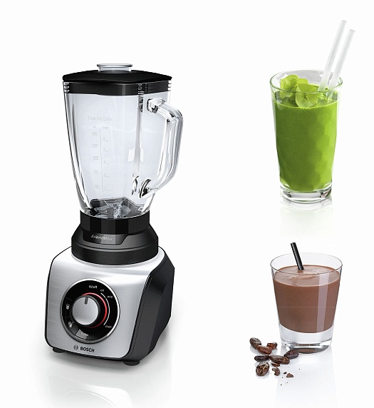 Блендер Bosch MMB65G0M — прибор с мощным мотором и высококачественной стеклянной чашей из термостойкого стекла, позволяет измельчать замороженные продукты