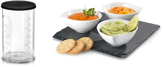 Блендер Bosch MS6CM6155 оснащен мощным мотором на 1000 Вт, что поможет добиться идеального результата и гарантирует эффективную работу. 12 скоростей регулируются поворотным переключателем. Турбо-режим позволит ускорить процесс готовки. В комплекте прилагаются: насадка для приготовления пюре, универсальный измельчитель для твердых ингредиентов, мерный стакан с крышкой для хранения переработанных продуктов.