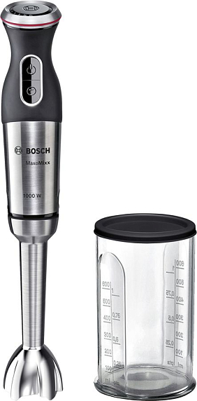 Блендер Bosch MS8CM6110 — это погружная модель из серии MaxoMixx, которая выполнена из прочного пластика и нержавеющей стали. Эти материалы гарантируют прочность устройства, а также его гигиеничность. Сочетание цветов «нержавеющая сталь» и «черный» позволяет прибору вписаться в современный кухонный интерьер. Нож с четырьмя лезвиями QuattroBladePro эффективно измельчает продукты до однородного состояния.