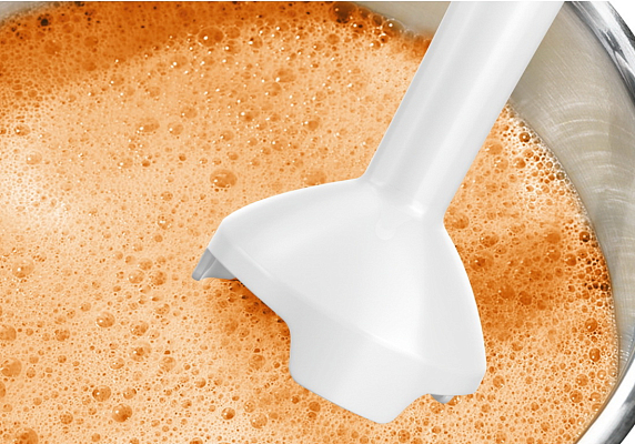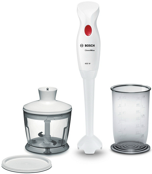 Погружной блендер Bosch MSM 24500 из серии CleverMixx сочетает в себе элегантность и функциональность. Его светлый корпус выполнен из прочного пластика, что придаёт устройству современный вид, который легко впишется в любой интерьер кухни. Нейтральная цветовая гамма позволяет гармонично сочетать его с другими элементами кухонной техники.