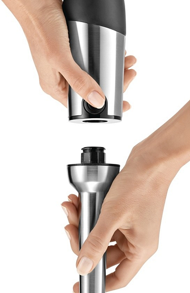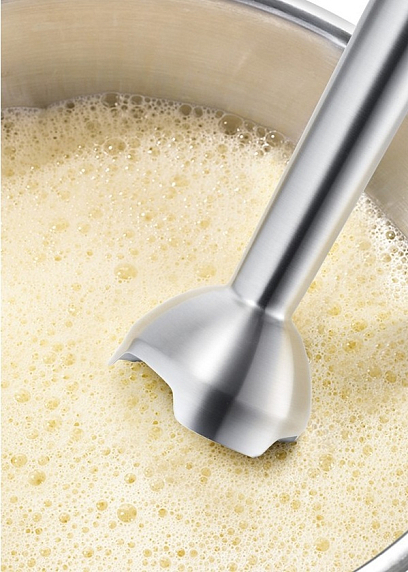 Разнообразие насадок расширяет возможности модели. Большие кнопки обеспечивают удобное управление и позволяют быстро менять насадки. Эргономичная рукоятка комфортно удерживается в руке. Специальное покрытие предотвращает скольжение. Ножка блендера и принадлежности можно мыть в посудомоечной машине.