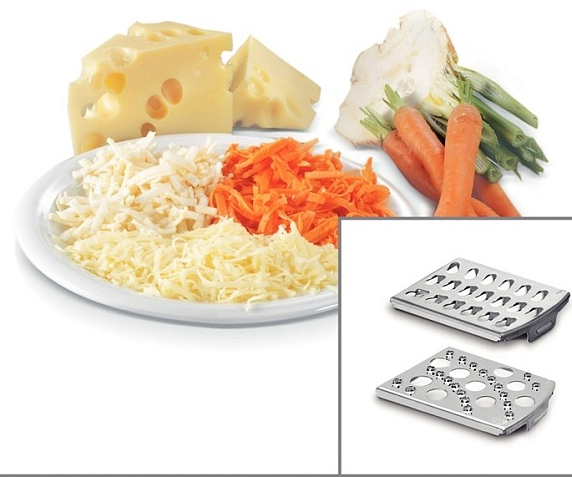 - 4 режущие вставки для шинковки и терки