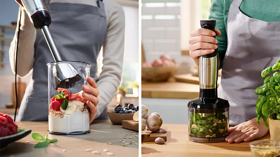 Эргономичная ручка с мягким покрытием Soft-touch обеспечивает комфортное и безопасное использование блендера. Бесступенчатая регулировка скорости и наличие импульсного/турбо режима позволяют настроить работу прибора под конкретные задачи и продукты. Комплектация блендера включает мерный стакан, что делает его использование еще более удобным. Есть также универсальная чаша с ножом для измельчения твердых продуктов, что делает блендер еще более функциональным.