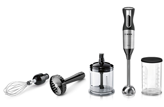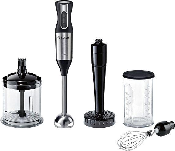 Блендер Bosch MSM6S55B выполнен в черном цвете. Модель оснащена мощным мотором 750 Ватт, что гарантирует превосходный результат в смешивании и измельчении разнообразных продуктов. Удобная эргономичная ручка с мягким покрытием Soft-touch и большими кнопками обеспечивает комфорт и безопасность эксплуатации. В комплект устройства входит венчик из нержавеющей стали, который может быть использован для взбивания яичного белка, крема из сливок или замешивания жидкого теста.