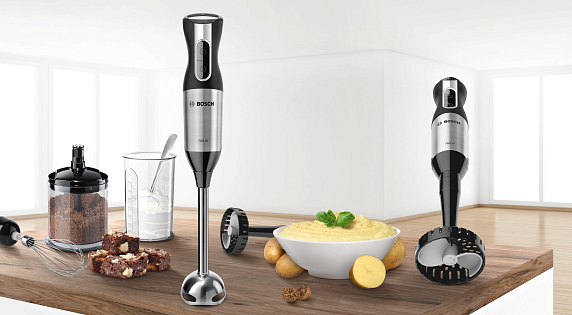 Погружные блендеры Bosch легко справляются с измельчением, смешиванием и взбиванием прямо в любой ёмкости — они идеально подходят для приготовления супов-пюре, коктейлей, соусов и детского питания. Устройства оснащены прочными ножами из нержавеющей стали, плавной регулировкой скорости и эргономичным дизайном для комфортного использования. Некоторые модели комплектуются дополнительными насадками, расширяя возможности кухонной подготовки. Блендеры Bosch — это практичный выбор для тех, кто ценит качество и функциональность.