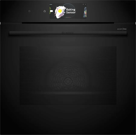 Духовой шкаф Bosch HBG978NB1 имеет строгий внешний облик сочетаются в компактном устройстве премиум-класса, рассчитанном на интеграцию в нишу стандартных размеров 60×56×55 см. Матовый черный корпус и черная фурнитура придают минималистичный и современный характер, а 4-слойное остекление дверцы обеспечивает безопасную эксплуатацию: наружная поверхность не нагревается свыше 30 °C. Высота 59.5 см, ширина 59.4 см и глубина 56.7 см делают прибор универсальным решением для кухонного гарнитура, при этом внутренний объем 71 литр позволяет одновременно готовить крупные блюда и деликатные выпечки. Панель управления — электронная, со стильными сенсорными элементами и 6.8″ цветным TFT-экраном с ёмкостными кнопками, обеспечивает интуитивное взаимодействие, удобный выбор программ и визуальную обратную связь при настройке времени и температуры.