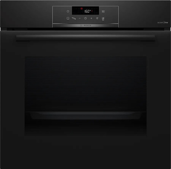 Духовой шкаф Bosch HQA472BB3 в чёрном исполнении подчёркивает современную кухонную эстетику и лаконичность интерьера: строгая лицeвая панель с чёрной фурнитурой формирует аккуратный акцент в составе мебели, оставляя пространство визуально лёгким. Фасад выполнен так, чтобы интеграция в нишу шириной 60 см выглядела цельной — компактные габариты 59,6 × 59,4 × 56,7 см позволяют аккуратно встроить прибор в стандартную конфигурацию, а размеры ниши для встраивания 60–60.4 × 56–56.8 × 55 см делают установку предельно предсказуемой. Внутренний объём 71 л сочетает способность готовить крупные блюда с удобством размещения нескольких уровней одновременно, что особенно важно при выборе техники для семьи или приёма гостей.