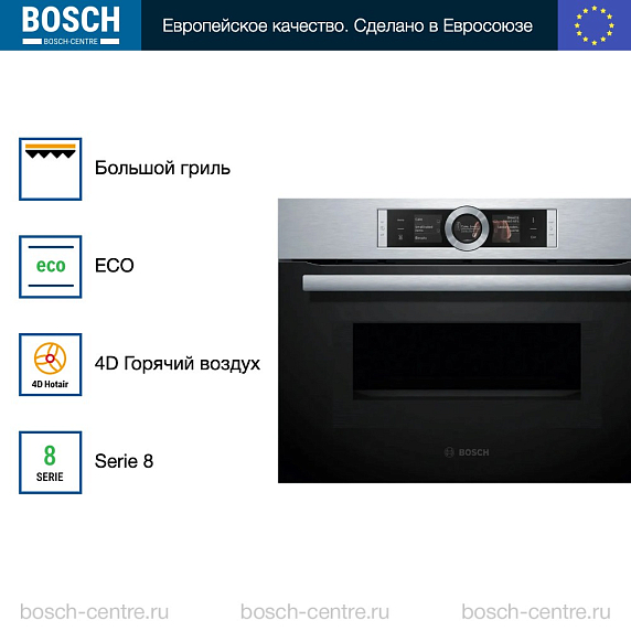 Духовой шкаф Bosch CMG656RS1I электрический, шириной 59.4 см, нержавеющая сталь, EcoClean очистка