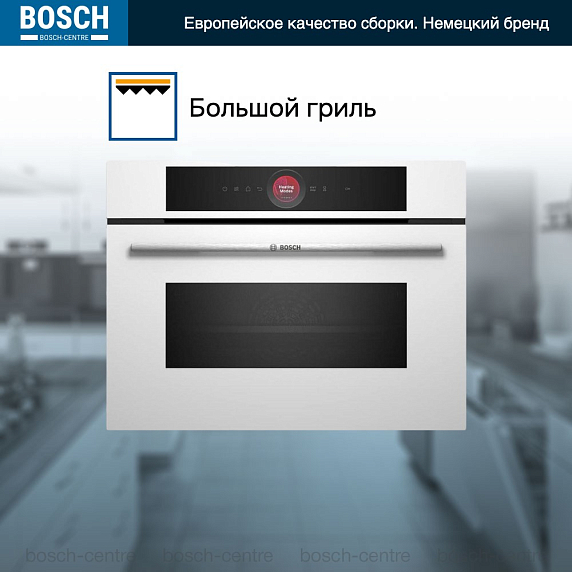 Духовой шкаф Bosch CMG7241W1 электрический, шириной 59.4 см, белый, AquaClean очистка