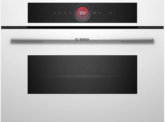 Духовой шкаф Bosch CMG7241W1 - это высококачественный прибор, который сочетает в себе элегантный дизайн и продуманные функции. Белый цвет корпуса идеально впишется в любой интерьер кухни. Благодаря объему в 45 литров, шкаф способен удовлетворить потребности даже большой семьи. Управление прибором осуществляется с помощью сенсорных элементов и 2.5-дюймового цветного TFT-дисплея, который обеспечивает простоту и удобство использования. Шкаф оборудован электронными часами и таймером, что позволяет контролировать процесс приготовления блюд и избегать пережаривания.