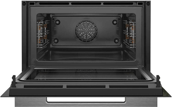 Система Home Connect дает возможность управлять прибором дистанционно через смартфон или планшет, что добавляет удобства в использовании. Духовой шкаф Bosch CMG7241W1 оснащен десятью режимами нагрева, включая верхний/нижний жар, большой и малый гриль, гриль с конвекцией, нижний жар, подогрев посуды и автоматический быстрый разогрев. Это позволяет приготовить практически любое блюдо, от классической пиццы до изысканного десерта. Внутреннее LED-освещение обеспечивает хороший обзор процесса приготовления пищи. Дверца шкафа откидная, с амортизатором SoftClose, что обеспечивает мягкое и плавное закрытие. Трехслойное остекление дверцы и система охлаждения прибора предотвращают перегрев и гарантируют безопасность использования. Блокировка от детей защищает от случайного включения или изменения режимов работы. В комплекте с шкафом идут комбинированная решетка и универсальный противень.