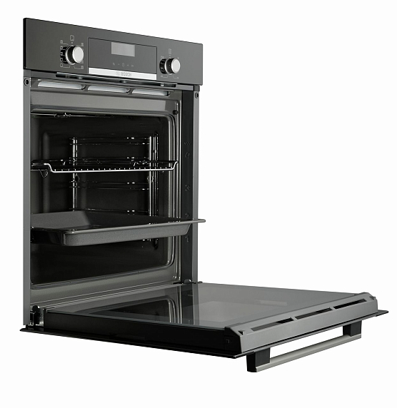 Габариты данной модели позволят совместить её с варочной панелью любого размера. Особенность конструкции дверцы обеспечивает максимально лёгкую очистку от капель пригоревшего жира. Внутренность рабочей камеры покрыта эмалью лёгкой очистки GranitEnamel. Её гладкая текстура, устойчивая к случайным ударам и царапинам, препятствует образованию нагара на стенках.
