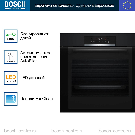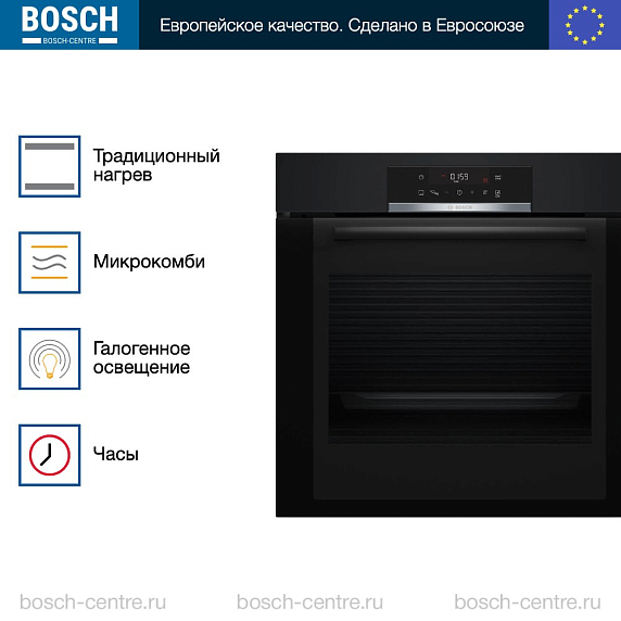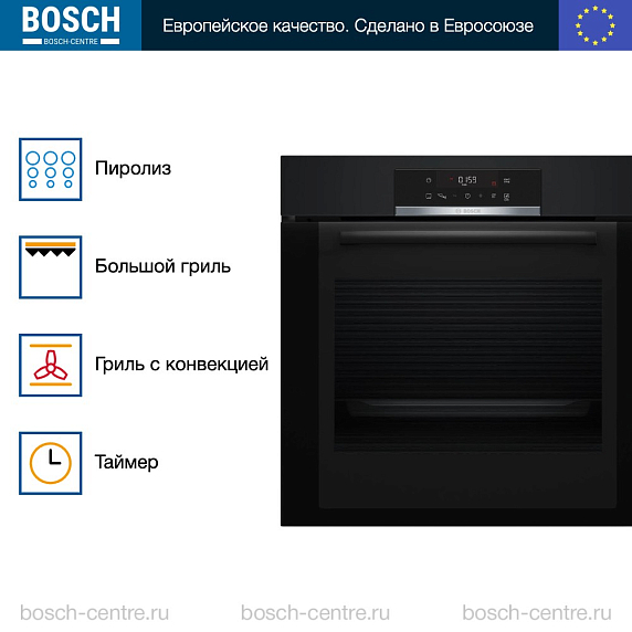 Духовой шкаф Bosch HBA372EB0 электрический, шириной 59.4 см, черный, пиролитическая очистка