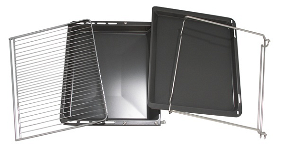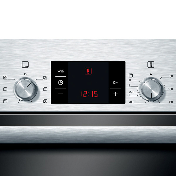 Модель HBB 23C350R оборудована выдвижной тележкой. Противни и решетки навешиваются на дверь и при открывании выдвигаются вместе с ней, при этом обе руки остаются свободными. Специальная эмаль EcoClean обладает пористой структурой. Жир, попадающий на ее поверхность, разлагается. Среди преимуществ данного вида очистки — удаление неприятных запахов. Благодаря одновременному действию всех нагревательных элементом духовой шкаф быстро разогревается, что позволяет сэкономить время и достигнуть желаемой температуры на 30% быстрее. Поворотные переключатели и дисплей обеспечивают удобное управление и точную регулировку.
