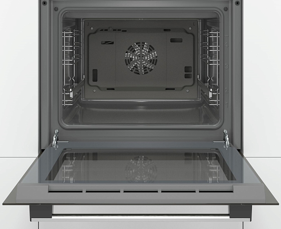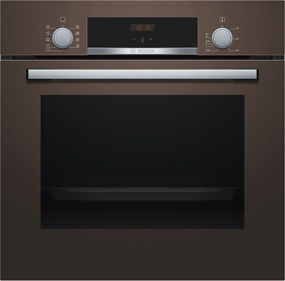 Bosch HBF 534EM0R — это электрический духовой шкаф коричневого цвета. Объём камеры составляет 66 л. Элементы управления — поворотные ручки и сенсорные кнопки. Освещение галогенное. Уровней установки противней — пять, в том числе на одном предусмотрены телескопические направляющие. Есть возможность блокировки от детей. Модель комплектуется двумя противнями и комбинированной решёткой.
