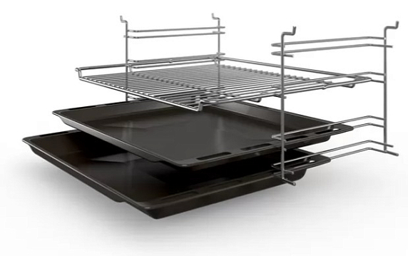 Мощность духового шкафа Бош позволяет максимально ускорить приготовление блюд даже самых внушительных объемов и весов. Поместите продукты на решетку, разместите под ней противень и включите «Большой гриль». В этом режиме включаются все нагревательные элементы гриля. Следуйте рекомендациям в инструкции, чтобы не пересушить продукты.
