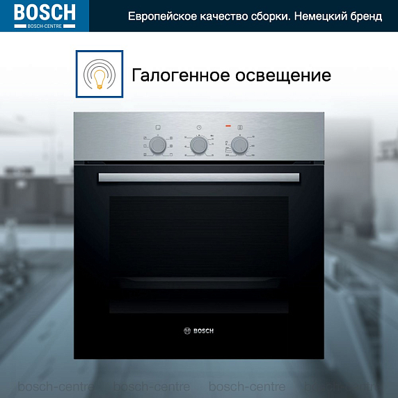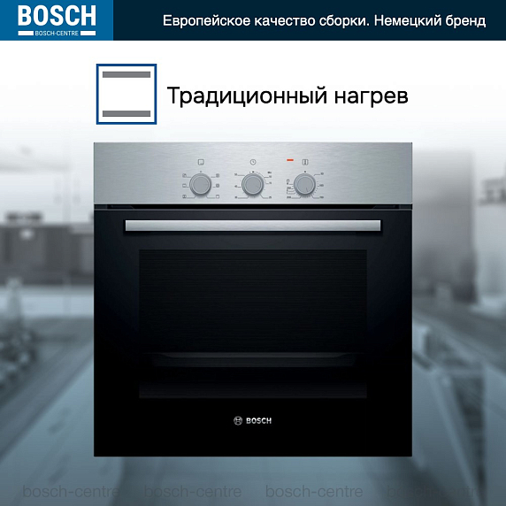 Духовой шкаф Bosch HBF011BR0Q электрический, шириной 59.4 см, нержавеющая сталь, традиционная очистка