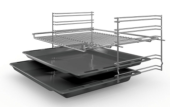 Мощность духового шкафа Бош позволяет максимально ускорить приготовление блюд даже самых внушительных объемов и весов. Поместите продукты на решетку, разместите под ней противень и включите «Большой гриль». В этом режиме включаются все нагревательные элементы гриля. Следуйте рекомендациям в инструкции, чтобы не пересушить продукты.