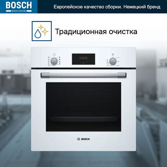 Духовой шкаф Bosch HBF114EV0R электрический, шириной 59.4 см, белый, традиционная очистка