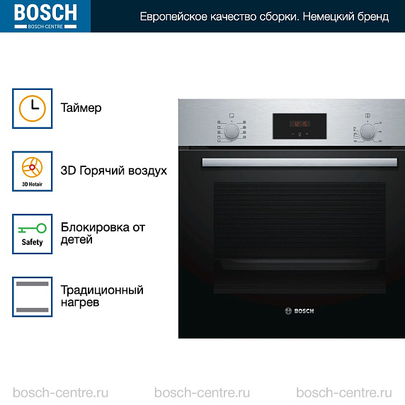 Духовой шкаф Bosch HBF134ES1 электрический, шириной 59.4 см, нержавеющая сталь, EcoClean очистка