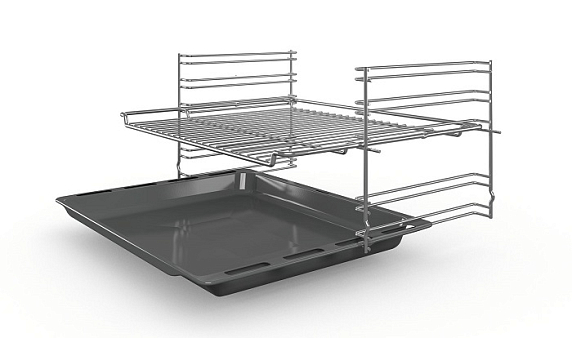 Мощность духового шкафа Бош позволяет максимально ускорить приготовление блюд даже самых внушительных объемов и весов. Поместите продукты на решетку, разместите под ней противень и включите «Большой гриль». В этом режиме включаются все нагревательные элементы гриля. Следуйте рекомендациям в инструкции, чтобы не пересушить продукты.