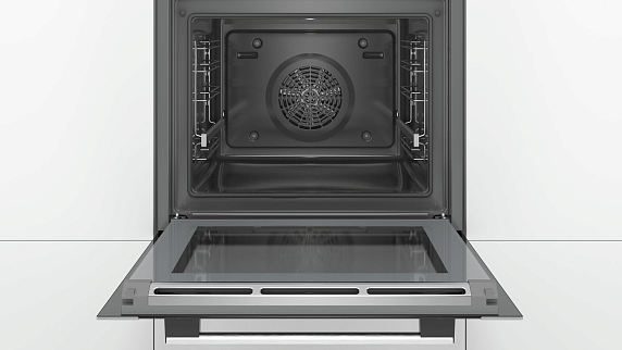 Bosch HBG378ES0R — это электрический духовой шкаф с десятью режимами нагрева, выполненный в цвете «нержавеющая сталь». Внутри камеры объёмом 71 л предусмотрено пять уровней установки противней, на одном из них установлены телескопические направляющие со Stop-функцией. Элементы управления — поворотные ручки и сенсорные кнопки, расположенные на цветном TFT-дисплее. Для установки противней предусмотрено пять уровней, на одном из них установлены телескопические направляющие. Предусмотрена блокировка от детей с возможностью настройки, есть индикатор остаточного тепла. В комплект входит два противня и одна решётка.
