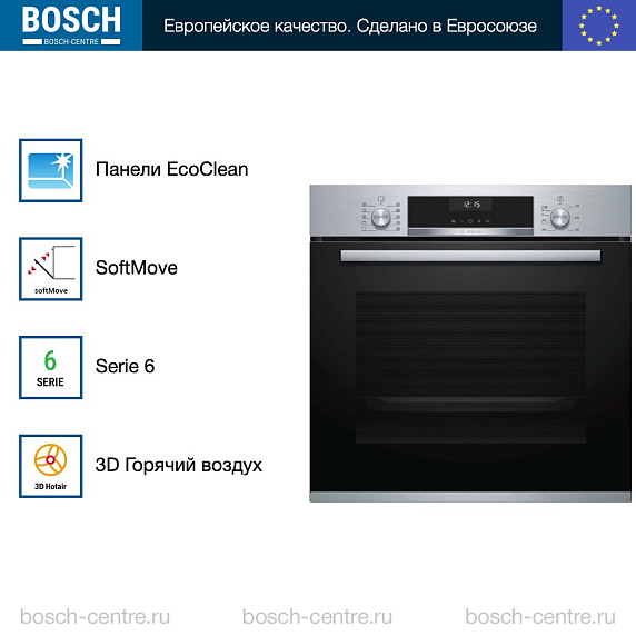 Духовой шкаф Bosch HBG517ES1R электрический, шириной 59.4 см, нержавеющая сталь, традиционная очистка