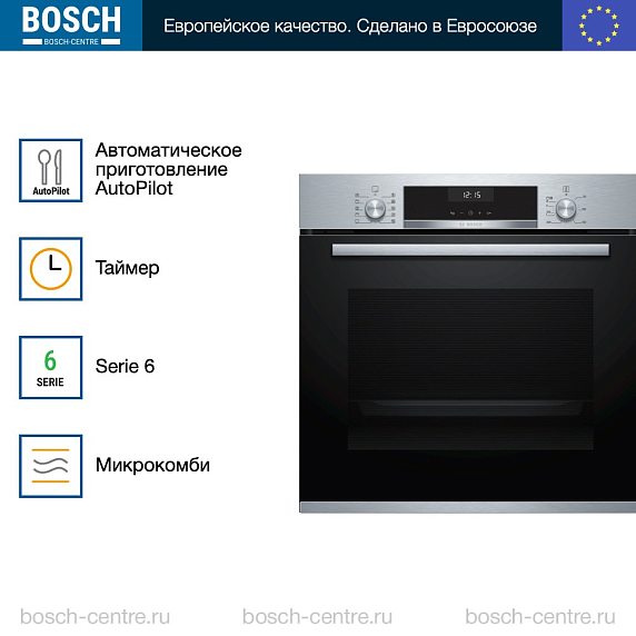 Духовой шкаф Bosch HBG5370S0 электрический, шириной 59.4 см, нержавеющая сталь, EcoClean очистка