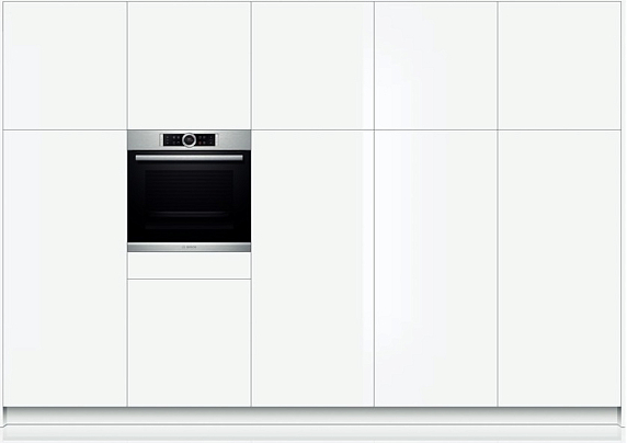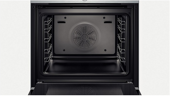 Бош HBG633BS1 укомплектована решёткой и универсальным противнем, которые можно размещать на пяти разных уровнях. Возможность включить освещение как во время работы, так и после её завершения позволяет не только контролировать процесс готовки, но и существенно облегчает уход по её окончании. Сенсорные элементы в сочетании с переключателем Control Ring делают процесс выбора режимов работы, простым и удобным. Десять режимов нагрева позволяют превратить рутинное приготовление пищи в настоящее творчество. 4D горячий воздух и обдув горячим воздухом ECO дают возможность хорошо запечь большой кусок мяса, или же нежно обжарить тонкие стейки. Для вашего удобства выделен специальный режим приготовления пиццы. А программа Шаббат позволит блюдам в рабочей камере оставаться тёплыми в течение 72 часов.