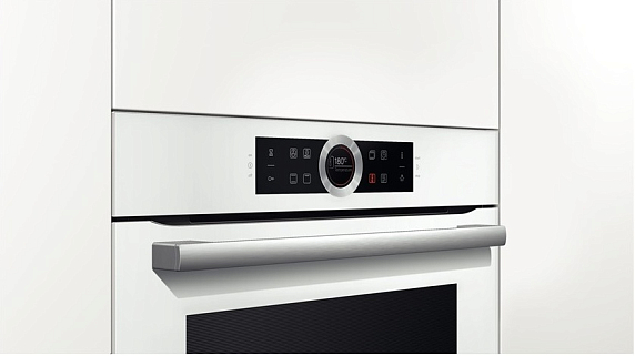Духовой шкаф Bosch HBG634BW1 оснащен эргономичной панелью управления с поворотным переключателем Control Ring. Сенсорный дисплей с отображением меню, включающим все возможные подсказки и советы. Дополнительная кнопка «Info» значительно упростит выбор режима.