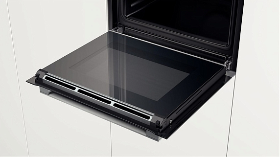 Независимый духовой шкаф HBG634HS1 оснащен 13-ю режимами нагрева для качественных результатов приготовления. Гриль с конвекцией идеально подходит для больших кусков мяса и птицы. Специальный вентилятор разгоняет потоки горячего воздуха по всему объему камеры для равномерного пропекания. Гриль придает блюду румяную и хрустящую корочку. Керамическое покрытие EcoClean установлено на самое труднодоступное место в духовом шкафу — заднюю стенку. Молекулярная структура панели препятствует проникновению жира внутрь. Бесшумное и плавное открытие и закрытие дверцы создает дополнительный комфорт использования и увеличивает срок эксплуатации.