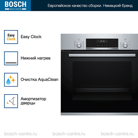 Духовой шкаф Bosch HBJ517YS0R электрический, шириной 59.4 см, нержавеющая сталь, AquaClean очистка