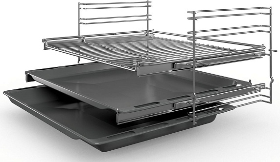 Дверца с функцией бесшумного и легкого закрытия SoftClose добавляет комфорта в эксплуатации. Режим «3D горячий воздух» позволяет добиться одинаково превосходного результата при приготовлении на всех трех уровнях, вместе или в отдельности. Покрытие EcoClean Direct делает чистку устройства легкой и энергоэффективной.