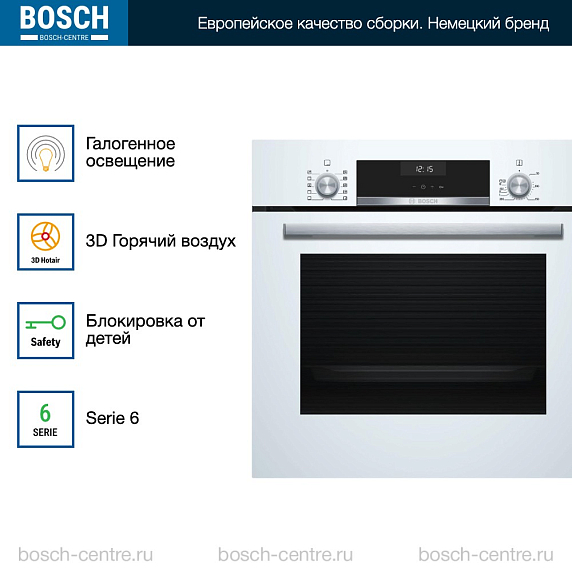Духовой шкаф Bosch HBJ558YW0Q электрический, шириной 59.4 см, белый, EcoClean очистка