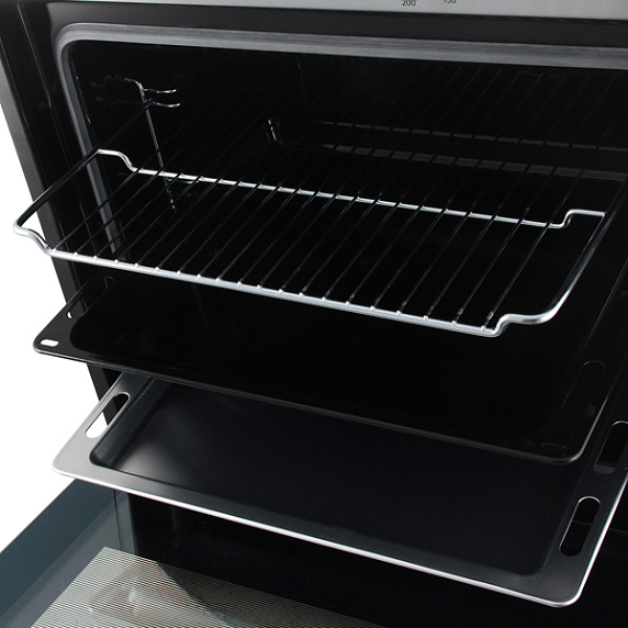 Электрический духовой шкаф HBN 231E4 — надежная модель с продуманной системой безопасности. Панель управления располагает утапливаемыми регуляторами, кнопками и дисплеем. Понятный и простой интерфейс повышает удобство использования. Фронт из нержавеющей стали легко очищается от загрязнений. При наличии режима «Гриль с конвекцией» необходимость в вертеле отпадает. Гриль и конвекционный вентилятор работают попеременно, обеспечивая равномерное пропекание и хрустящую корочку. Внутреннее освещение позволяет контролировать процесс без открытия дверцы и потери тепла. Это особенно важно при приготовлении пирогов и бизе.