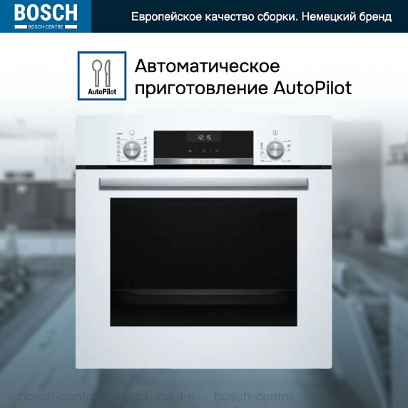 Духовой шкаф Bosch HIJ517YW0R — модель белого цвета с функцией добавления пара при выпечке и очисткой AquaClean.