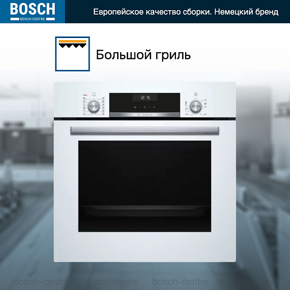 Духовой шкаф Bosch HIJ517YW0R электрический, шириной 59.4 см, белый, AquaClean очистка