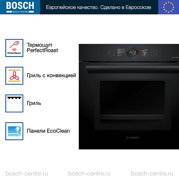 Духовой шкаф Bosch HMG8764C1 электрический, шириной 59.4 см, черный, пиролитическая очистка