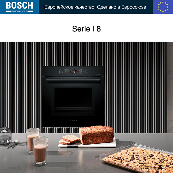 Духовой шкаф Bosch HMG8764C1 — это современное устройство, представляющее собой сочетание элегантного дизайна и передовых технологий. Его корпус выполнен в строгом черном цвете, что позволяет ему гармонично вписываться в любой интерьер. Размеры прибора составляют 59.5 см в высоту, 59.4 см в ширину и 56.7 см в глубину, что делает его идеальным вариантом для встраивания в кухонную мебель. Особенностью этого духового шкафа является его внутренний объем, составляющий 67 литров. Это позволяет приготовить большое количество блюд одновременно, что особенно актуально при приеме гостей или приготовлении праздничного стола. Управление прибором осуществляется с помощью сенсорных переключателей Control Ring и 2.5″ цветного TFT дисплея с сенсорными кнопками. Это обеспечивает удобство и простоту использования духового шкафа. Многофункциональные Easy Clock часы и таймер позволяют точно контролировать процесс приготовления блюд. Количество режимов нагрева составляет 13, что позволяет выбрать оптимальный вариант для каждого конкретного блюда. Система 4D горячего воздуха обеспечивает равномерное распределение температуры внутри духового шкафа, благодаря чему блюда приготавливаются одинаково хорошо в любой части шкафа. Особое внимание заслуживает функция микроволн, которая позволяет значительно сократить время приготовления блюд. Благодаря этому прибор станет незаменимым помощником для тех, кто ценит свое время. Система пиролитической очистки обеспечивает легкость ухода за духовым шкафом. В процессе пиролиза все загрязнения превращаются в пепел, который легко удаляется с поверхности.