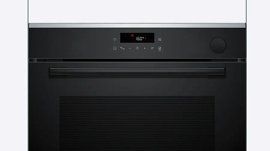 Духовой шкаф Bosch HRG232EB3 выполнен в элегантном чёрном оформлении, он органично впишется в интерьер любой кухни и подчёркивает аккуратность встроенной мебели. Фронтальная панель, украшенная простыми сенсорными элементами управления и информативным LCD-дисплеем, создаёт ощущение премиального устройства при аккуратной экономии пространства: внешние габариты около 59.5 см по высоте, 59.4 см в ширину и 56.7 см в глубину позволяют компактно оформить нишу для встраивания с размерами 60–60.4 см по высоте, 56–56.8 см по ширине и 55 см в глубину. Корпус и фасад выдержаны в едином тональном решении, при этом эргономика управления минимизирует нагрузку на визуальное восприятие и облегчает настройку параметров перед началом работы.