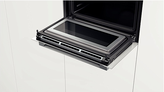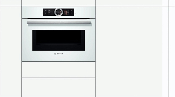 Компактный духовой шкаф CMG636BW1 с 12-ю режимами нагрева позволяет готовить разные виды блюд. Элегантный дизайн гармонирует с полноразмерной техникой. Фронт из закаленного стекла — альтернатива нержавеющей стали. Панель EcoClean на задней стенке расщепляет жировые соединения в течение приготовления и не требует дополнительных энергозатрат. Меню Assist предлагает автоматические установки режима, оптимальной температуры и времени приготовления для выбранного блюда. Функции и режимы устанавливаются с помощью кнопок, сенсорных полей, дисплеев и поворотного регулятора.