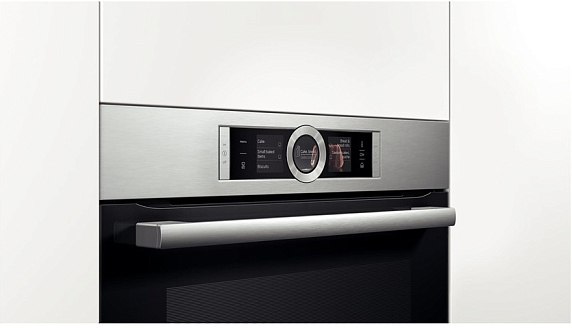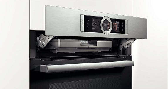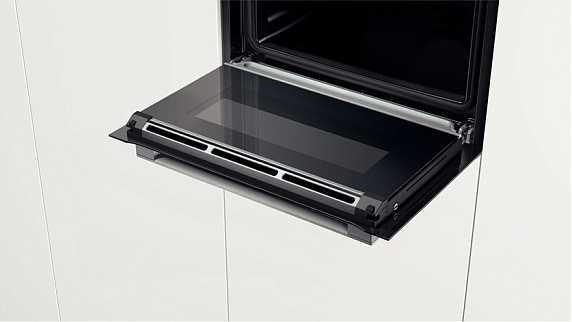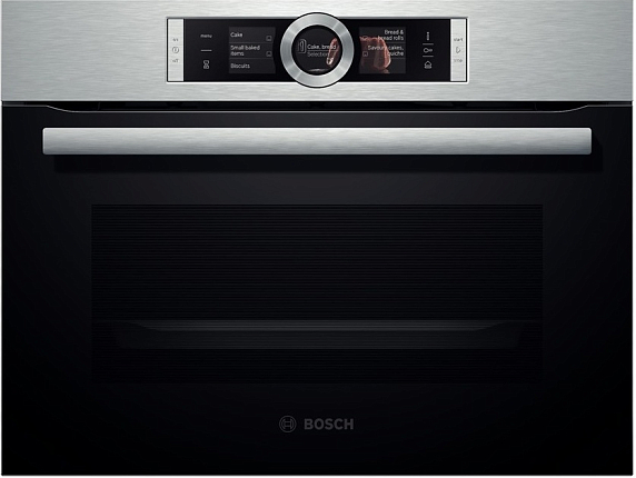 Модель выполнена в одном стилевом решении с полноразмерной техникой, что позволяет создавать гармоничные линии и изысканные комбинации из встраиваемых приборов Bosch. Удобное анимационное меню Assist обеспечивает быстрый доступ к режимам и функциям, а также автоматически подбирает режим, оптимальную температуру и время приготовления для большого количества блюд. Самоочищающаяся панель EcoClean на задней стенке сокращает время и экономит силы на очистку камеры.