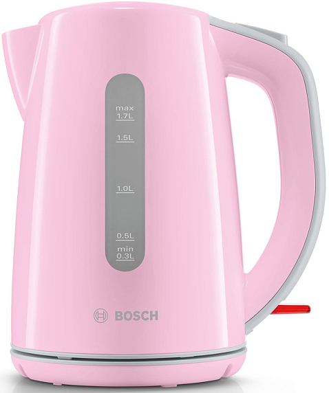 Чайник Bosch TWK 7500K в розовом цвете оснащен защитой от перегрева. Устройство автоматически отключится, если не будет заполнен.
