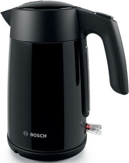 Электрический чайник Bosch TWK7L463 выполнен в чёрном цвете. Автоматическое открывание крышки и отключение прибора без воды обеспечивают безопасность эксплуатации. Угол поворота подставки составляет 360 градусов, что повышает комфорт использования.