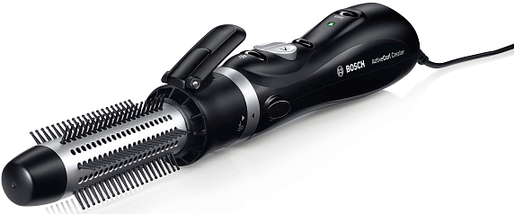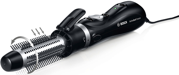 Щетка для завивки горячим воздухом Bosch PHA 7371 имеет в комплекте две насадки разных размеров. Благодаря убирающимся зубчикам прибор легко удалить после закручивания без разрушения локона. Функция ионизации сохраняет волосы блестящими, гладкими и послушными.