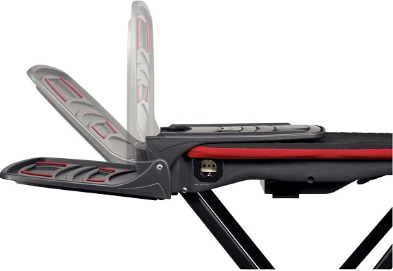 Благодаря функции подогрева исключена возможность образования конденсата на гладильной доске. Семь ступеней регулировки высоты создают дополнительный комфорт при использовании. Устойчивые ножки обеспечивают надежную устойчивость — доска не скользит по полу. Предназначена для парогенераторов весом до 7,5 кг/